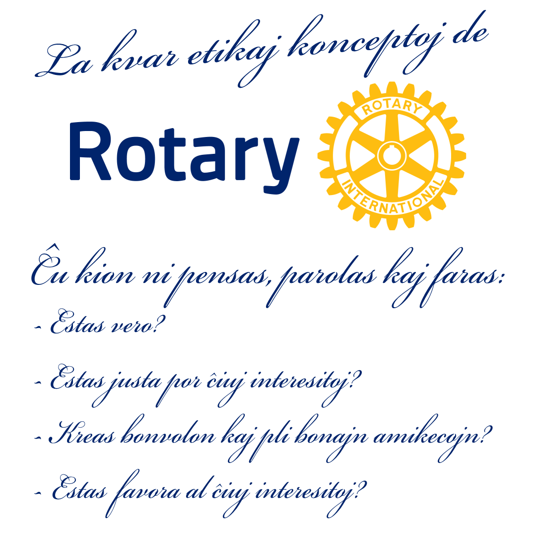 La forto de Rotary devenas de la fakto ke ĝi estas internacia, sendependa movado, nepolitika, nereligia, respektante ĉies pensliberecon kaj kulturon, sed ligita per samaj idealoj de Paco, respekto kaj Interkompreno.