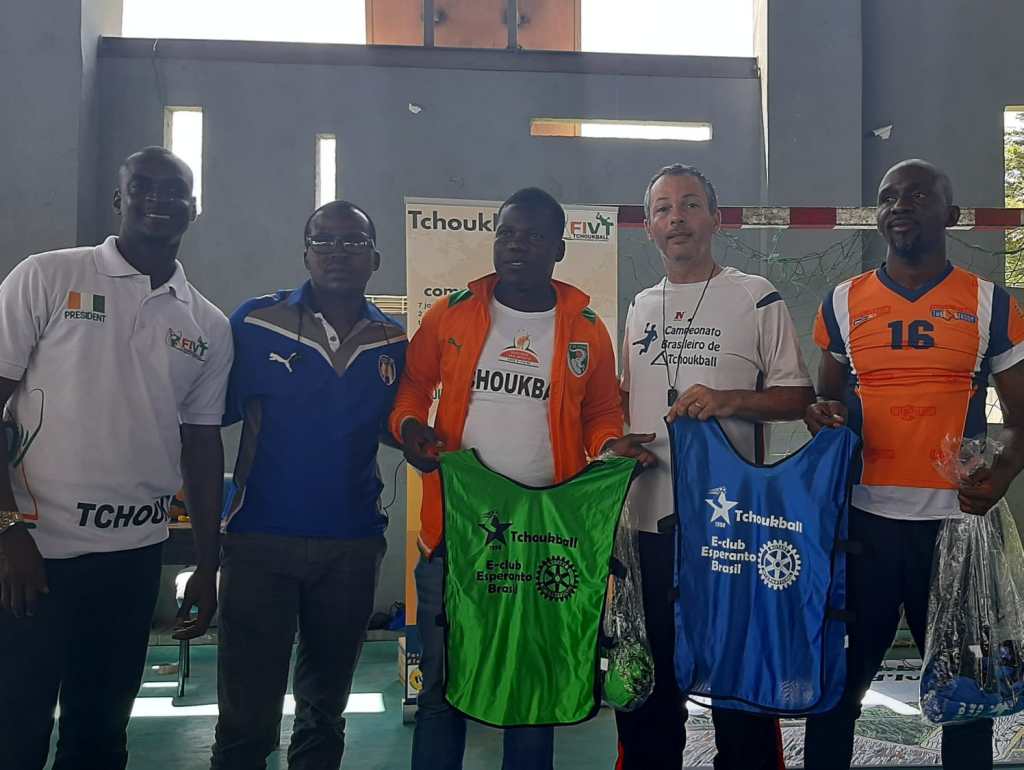 De la 24-a ĝis la 27-a de oktobro, la prezidanto de Rotary E-Klubo de Esperanto Brazilo, S-ro Júlio Callegari, estis en la urbo Abidjan, Ebur-Bordo por instrui tchoukball-trejnadkurson. Dum ĉi tiu vojaĝo li havis la ŝancon renkontiĝi kun S-ro Abdoulaye Sanogo, DGN de ​​la Rotary Club Abidjan-Golf (distrikto 9101) kun kiu ili faris agadon de plantado de dek arboj, tiel antaŭenigante la interŝanĝon inter kluboj kaj la gvidliniojn de la programo “Konservu la Planedon” en nia distrikto 4560. La sekvan tagon, kune kun S-ro Sanogo, ili renkontiĝis kun la Ĝenerala Direktoro de la Nacia Instituto pri Sporto kaj Junularo, S-ro Habib Sanogo, kiu ankaŭ estas ano de Rotary, “IPP” de la Rotaria Klubo Abidjan Atlantido. Kune ili diskutis pri partnerecaj projekto-eblecoj por organizi eventojn kaj agadojn por la disvolviĝo de Tchoukball (la sporto de paco) en Ebur-Bordo kaj estontaj partnerecoj kaj vizitoj inter klubanoj.