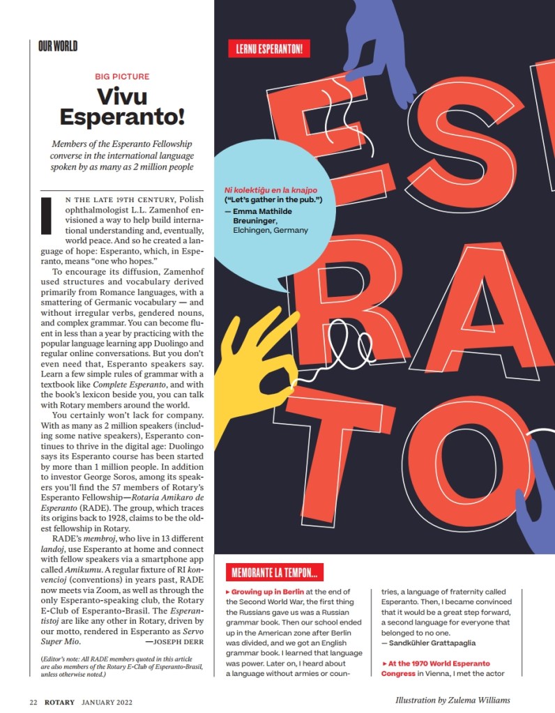 Artikolo pri Esperanto aperas en revuo de Rotary