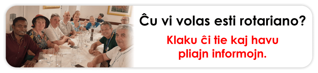 “Tial ni renkontiĝas regule por realigi en amika kunlaboro homhelpajn projektojn, per konkretaj agadoj en multaj landoj,” diris tion la fondinto de Rotary Internacia la advokato “Paul Harris” en Chicago.